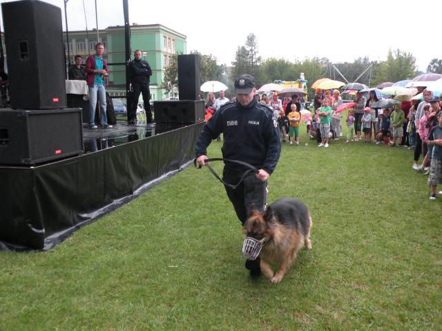Sporą atrakcją był także pokaz tresury psa policyjnego. Nie zabrakło również pytań dzieci do pana policjanta, który dzielnie na nie odpowiadał.