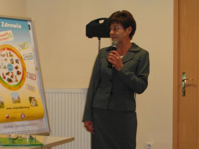 Dietetyczka Mirosława Dobosz opowiedziała o diecie osób dojrzałych zachęcając do codziennej aktywności. Zapoznała słuchaczy z najnowszą prezentacją sposobu odżywiania, zwróciła uwagę na błędy żywieniowe i potrzebę picia wody.