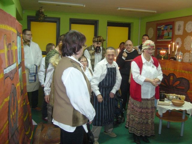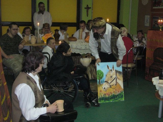 O godzinie 15.00 rozpoczęła się uroczystość. Kierownik Środowiskowego Domu Samopomocy przywitała gości: panią dr Annę Formanowicz wraz ze stypendystami, pana Władysława Krzyżanowskiego Burmistrza Miasta Ostrów Mazowiecka, panią Danutę Janusz Pierwszego Zastępcę Burmistrza Miasta, panią Barbarę Kędziora Kierownika Miejskiego Ośrodka Pomocy Społecznej, rodziców, rodziny i przyjaciół Domu. Następnie Uczestnicy ŚDS wystawili balladę A. Mickiewicza pt. "Pani Twardowska" przygotowaną pod kierunkiem terapeutek: pani Iwony Krajewskiej, pani Joanny Klimek, pani Grażyny Kożuchowskiej. Po występie uczestniczka Domu pani Renata Kołtun zaśpiewała pastorałkę, po czym przyszedł czas na prezenty.