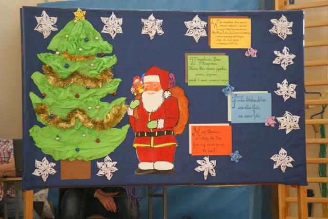 Obecni uczniowie oraz nauczyciele mieli okazję usłyszeć w kilku językach życzenia oraz kolędy. Dodatkowym elementem oddającym świąteczną atmosferę były dekoracje. Nie zabrakło również żłobka, w którym leżał owinięty w chustę Jezus.