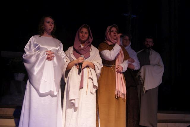 W spektaklu bierze udział około 60 osób. Reżyseria Piotr Trentowski, teksty Marek Bożykowski, muzyka Michał Swaczyna i Piotr Trentowski. W spektaklu wykorzystane są również trzy 3 piosenki autorstwa Jacka Kaczmarskiego. Choreografię przygotowali Kinga Pochmara i Bartek Skalik. W rolach głównych występują: Kinga Goca jako Maria, Jakub Dembek jako archanioł Gabriel, Marcin Dembek jako Szatan, Jacek Stachacz jako Józef, Klaudia Dąbkowska jako anioł we śnie Józefa, w rolach trzech króli wystąpili Michał Swaczyna, Łukasz Kotwica i Tadeusz Trentowski, w roli Heroda zobaczyliśmy Sławomira Konarzewskiego.