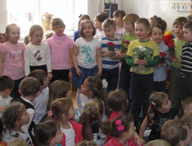 Nie mogło też zabrakną tradycyjnych kwiatów i przemiłych życzeń. Dyrektor Małgorzata Zalewska nagrodziła milusińskich słodkościami. I choć Dzień Kobiet jest tylko raz w roku, to warto o nim pamiętać, aby uczyć wzajemnego szacunku, życzliwości kultury bycia, które czynią życie milszym i piękniejszym zarówno dla dziewcząt jak i chłopców.