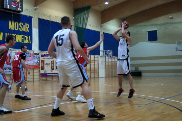 To co było przewagą Sokoła w pierwszej części meczu, to rzuty za 3 punkty. Było to również spowodowane bardzo dobrą grą pod koszem drużyny przeciwnej. KS Mon-Pol Płock dysponował dwoma bardzo wysokimi zawodnikami, którzy nie pozwalali na oddawanie wielu rzutów spod kosza, ponadto zaliczyli wiele zbiórek.