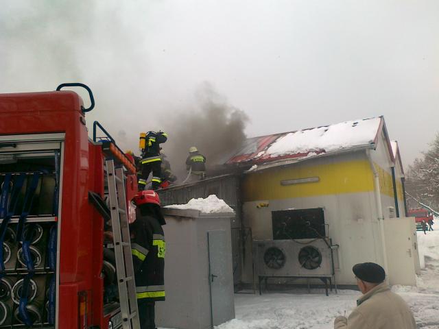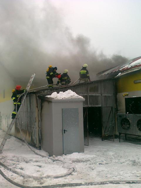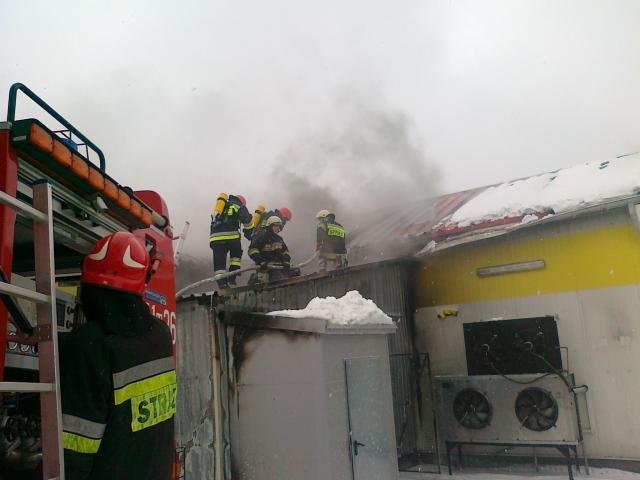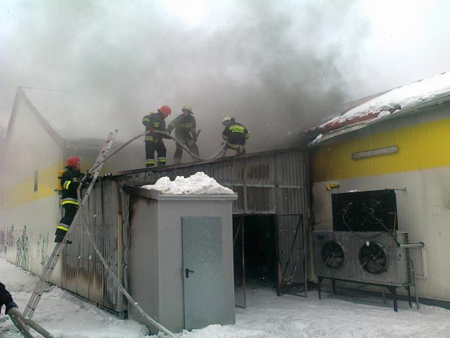 Ze wstepnych ustaleń wynika, że zapalił się śmietnik, a następnie pożar przeniósł się na część magazynową sklepu. Zarówno śmietnik jak i część magazynowa zostały ugaszone. Aktualnie strażacy próbują dostać się do palącej się pianki, która znajduje się pod blachą dachową hali.
