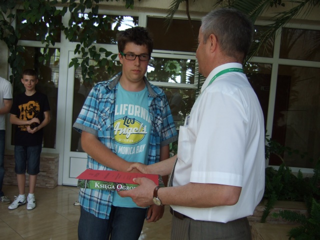 Wręczenie nagród miało miejsce w sali botanicznej, gdzie Piotr otrzymał zestaw narzędzi ogrodniczych, książki, oczywiście o tematyce ogrodniczej oraz sadzonki kaktusa.