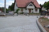 Aktualnie trwają prace związane z utwardzeniem nawierzchni ulicy kostką brukową.