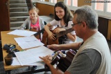 Dzieci i młodzież ćwiczy swoje umiejętności pod okiem nauczyciela gry na gitarze Janusza Spaulenoka.
