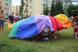 W piątek 8 lipca dzieci zostały zaproszone wspólnie z rodzicami na spotkanie "Wakacyjne Podwórko" zorganizowane przez Miejski Dom Kultury na osiedlu Lubiejewska.