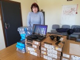 Dzięki pozyskanemu dofinansowaniu zakupiono niezbędny sprzęt do realizacji nauczania zdalnego, m.in.: 24 laptopy, myszki oraz zestawy słuchawek z mikrofonami.