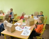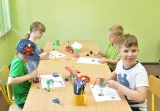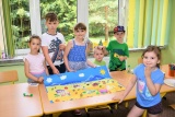 Kolejny dzień wakacyjnych zajęć obfitował w morskie pejzaże. Przy użyciu muszelek, farb i piasku wykonano piękne krajobrazy morskie.