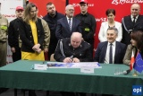 Gminne Centrum Sportu i Rekreacji w Wąsewie było miejscem podpisania umów między członkiniami zarządu województwa mazowieckiego, wójtami oraz przedstawicielami jednostek OSP.