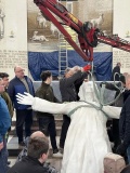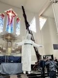 Figura Chrystusa Dobrego Pasterza została zamontowana jako zwieńczenie nastawy ołtarzowej w kościele w Ostrowi Mazowieckiej