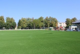 Na terenie boiska trwają zaawansowane prace, które obejmują instalację systemu nawadniania oraz układanie maty elastycznej. Obecnie kładziona jest nawierzchnia ze sztucznej trawy,