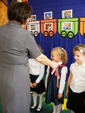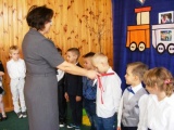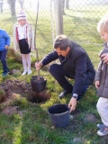 Miłą tradycją pierwszaków w dniu ślubowania jest wkopanie pamiątkowego drzewka, co też uczynili, oczywiście przy mocno grzejących dla nich promieniach słońca.