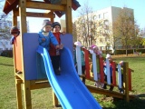 Korzystając z ciepłych, jesiennych dni najmłodsze dzieci z grupy VII aktywnie spędzały czas na placu przedszkolnym.