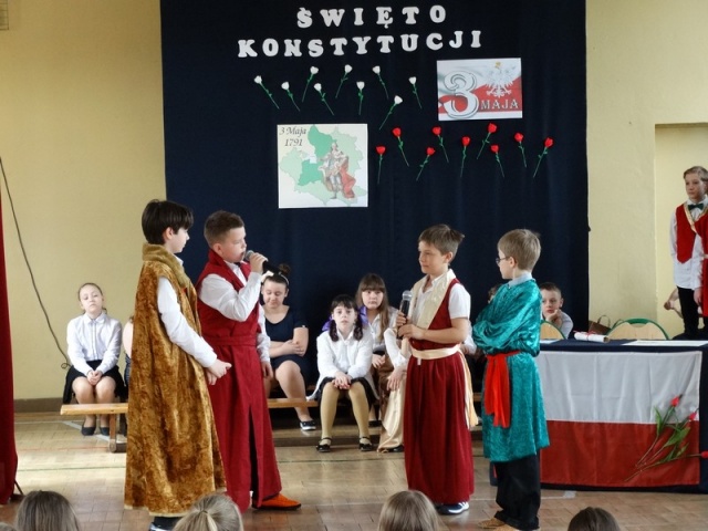 Uczniowie dużej Jedynki przygotowali uroczysty apel z okazji rocznicy uchwalenia Konstytucji 3 Maja.
