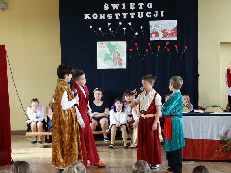 Uczniowie dużej Jedynki przygotowali uroczysty apel z okazji rocznicy uchwalenia Konstytucji 3 Maja.