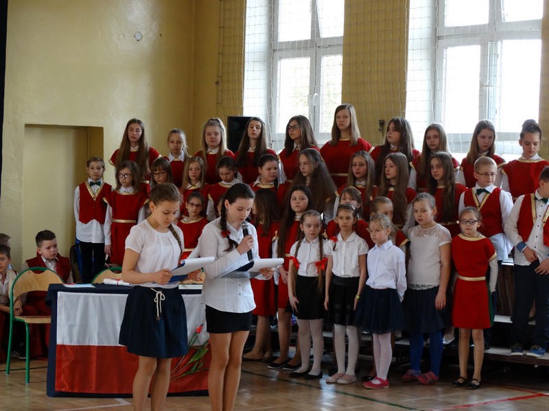 Uczniowie dużej Jedynki przygotowali uroczysty apel z okazji rocznicy uchwalenia Konstytucji 3 Maja.