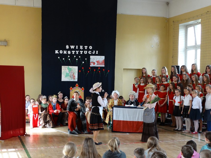 Uczniowie dużej Jedynki przygotowali uroczysty apel z okazji rocznicy uchwalenia Konstytucji 3 Maja.