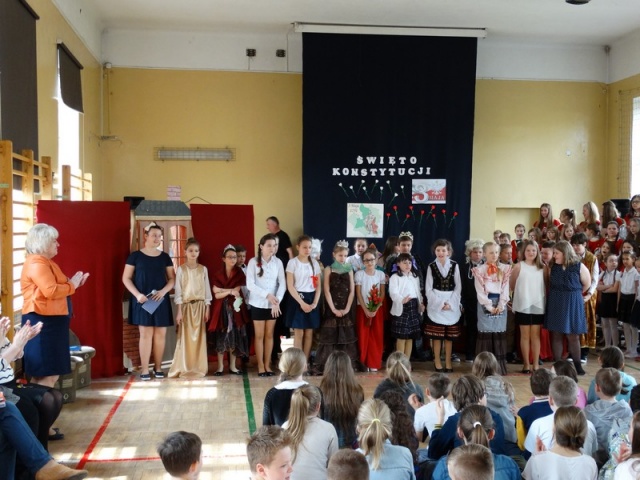 Uczniowie dużej Jedynki przygotowali uroczysty apel z okazji rocznicy uchwalenia Konstytucji 3 Maja.