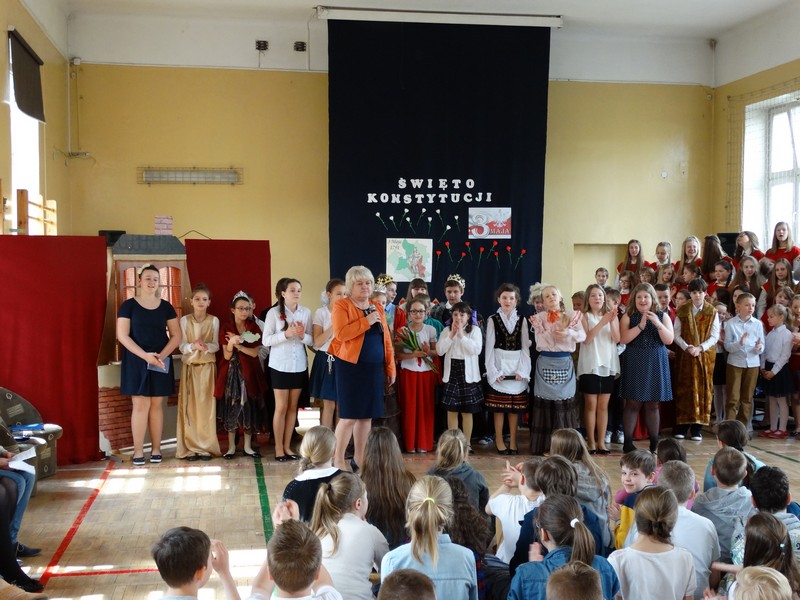 Uczniowie dużej Jedynki przygotowali uroczysty apel z okazji rocznicy uchwalenia Konstytucji 3 Maja.