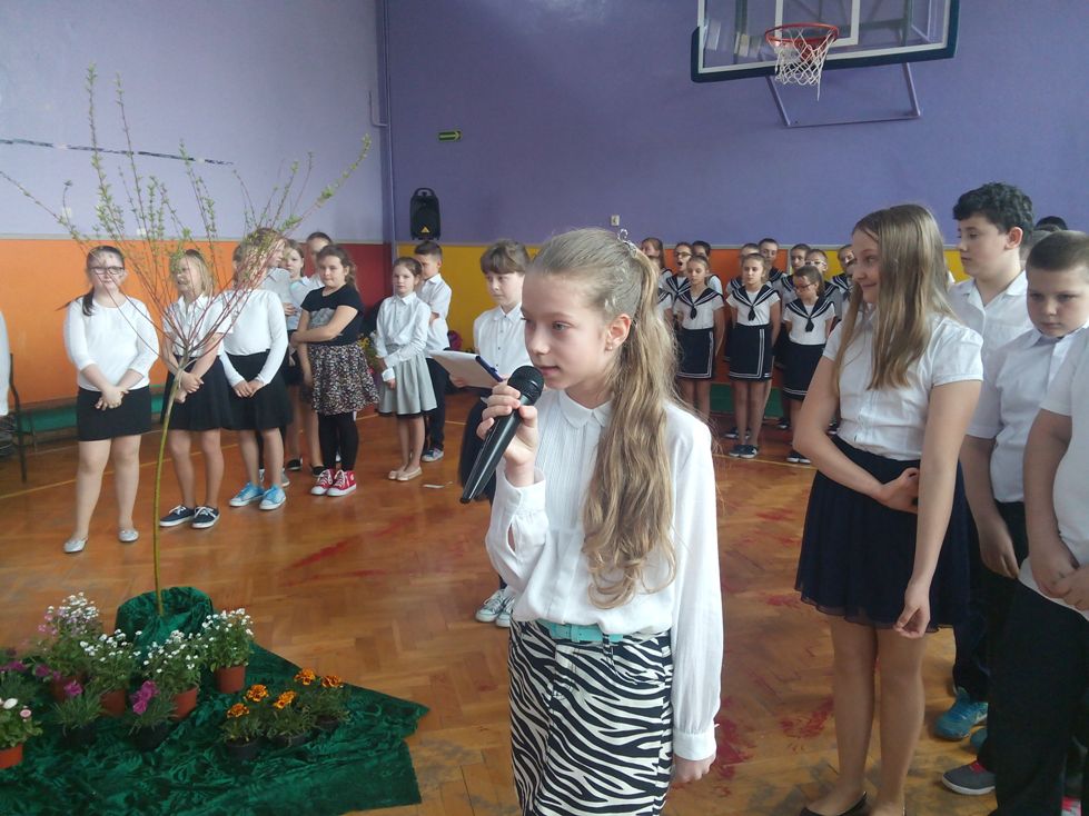 Podczas uroczystego apelu o tematyce ekologicznej można było podziwiać wystawę pięknych konkursowych dzieł plastycznych.