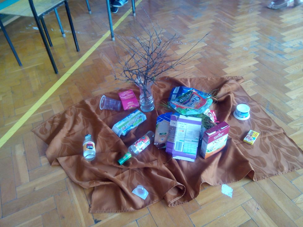 Podczas uroczystego apelu o tematyce ekologicznej można było podziwiać wystawę pięknych konkursowych dzieł plastycznych.