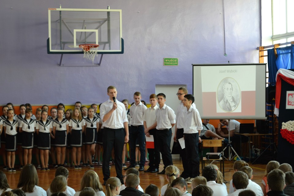Uczniowie gimnazjum i szkoły podstawowej przedstawili kontekst polityczny, towarzyszący zgromadzeniu Sejmu Wielkiego oraz powstaniu jego dzieła.