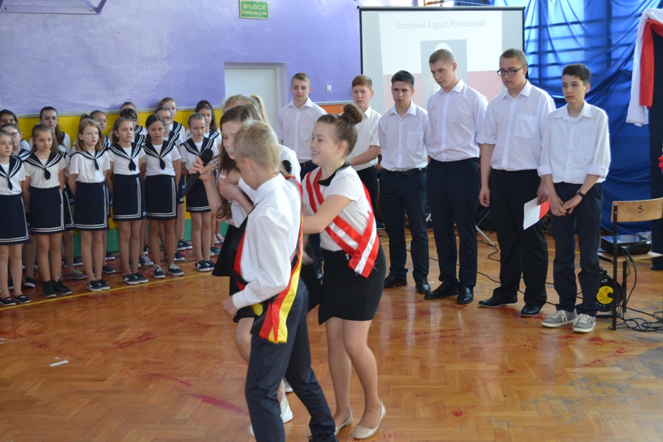 Uczniowie gimnazjum i szkoły podstawowej przedstawili kontekst polityczny, towarzyszący zgromadzeniu Sejmu Wielkiego oraz powstaniu jego dzieła.