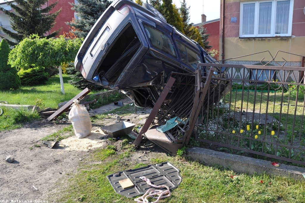 23-latek stracił panowanie nad pojazdem i uderzył w ogrodzenie posesji.