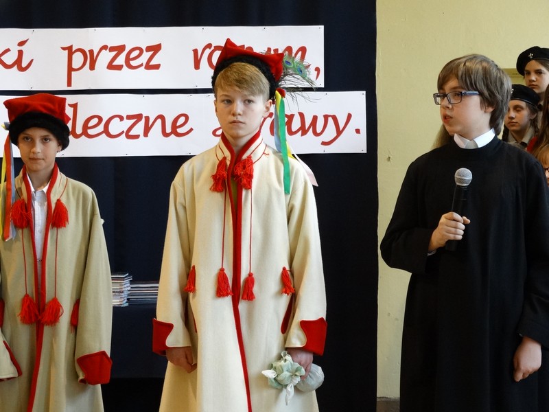 Dnia 13 maja 2016r w Szkole Podstawowej Nr 1 odbył się Dzień Patrona. Uroczystość prowadziły panie Katarzyna Brzostek i Emilia Kukwa. Przybyłych gości powitał Polonez w wykonaniu klas VI przygotowany przez panią Marzenę Świedzińską.
