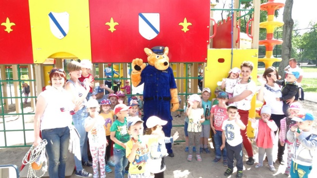 Ogródek Jordanowski odwiedziły dzieci z Przedszkola Samorządowego w Brańszczyku. Na spotkanie z maluchami przyjechali ostrowscy policjanci, Lisek i Andi.