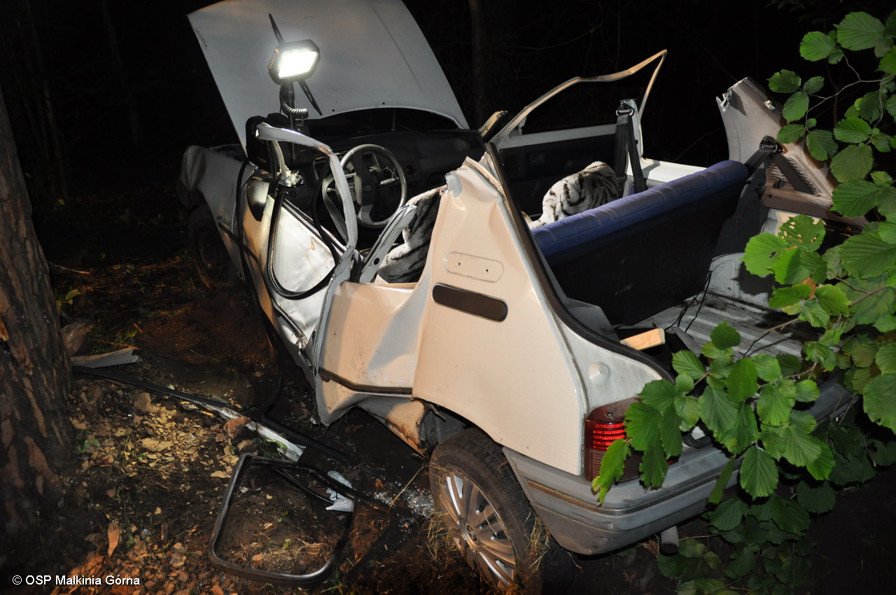 W dniu 7 czerwca 2016 r. ok. godz. 22:14 w miejscowości Niegowiec (DW 627) (gm. Małkinia Górna) samochód osobowy Peugeot 205 wypadł z drogi i uderzył w drzewo.
