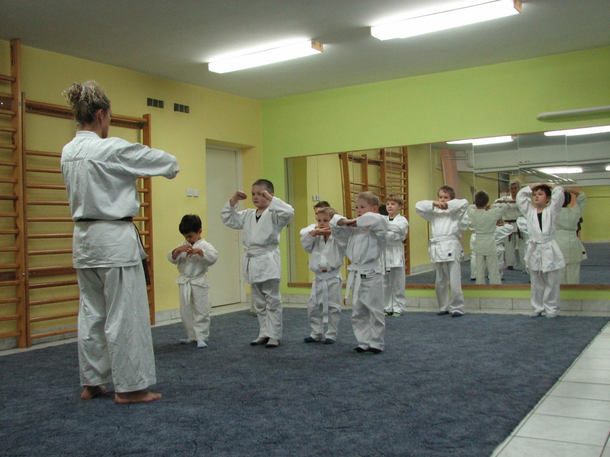 Zajęcia prowadzonE w SP 2 w Małkini przez panią Marię Jasko - jedyną kobietę w gronie instruktorów OKKK, która trenuje około 30 dziewcząt i chłopców w wieku od 3 do 15 lat.