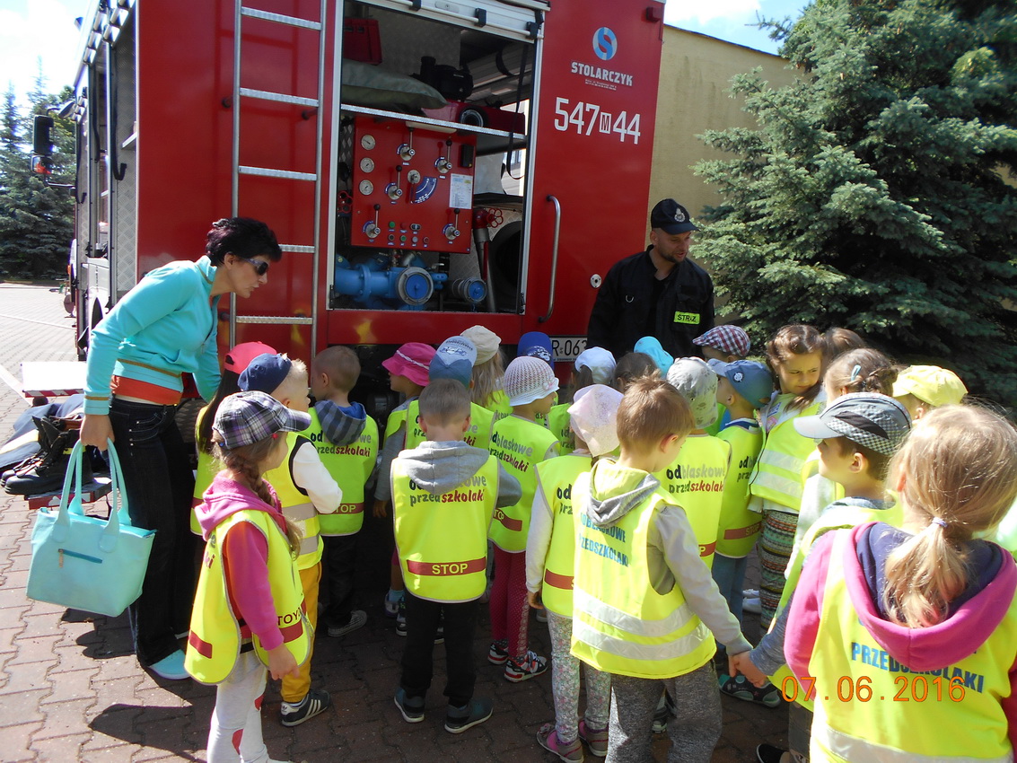 Dwie grupy przedszkolaków ?Biedronki? i ?Motylki? z Przedszkola Samorządowego w Małkini Górnej odwiedziły jednostkę OSP Małkinia Górna.