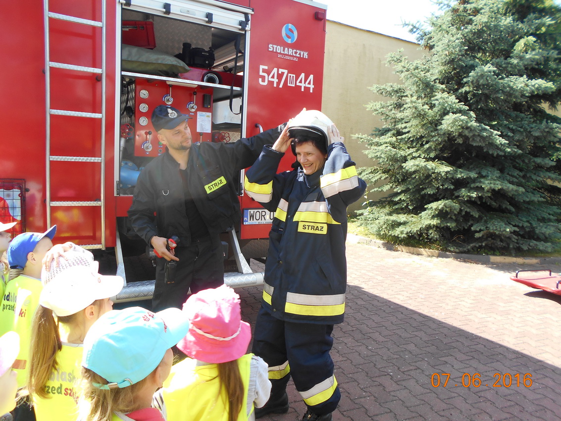 Dwie grupy przedszkolaków ?Biedronki? i ?Motylki? z Przedszkola Samorządowego w Małkini Górnej odwiedziły jednostkę OSP Małkinia Górna.