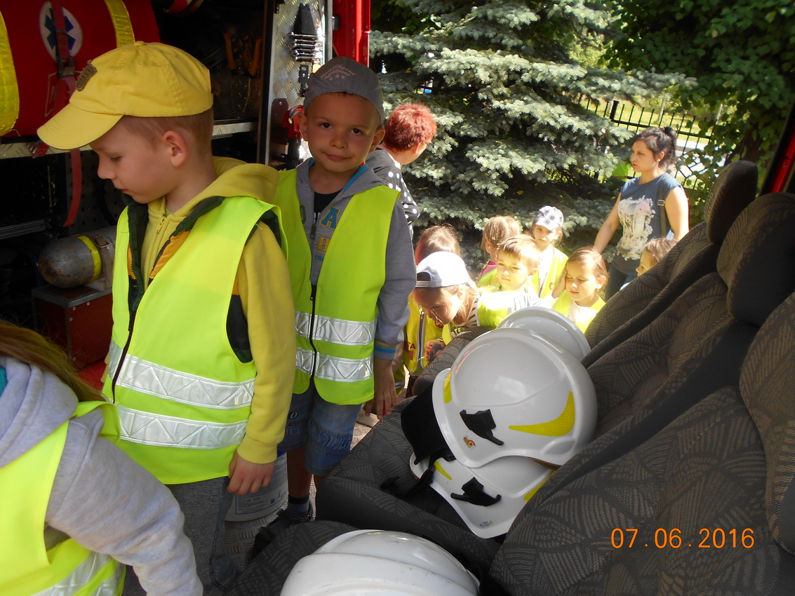 Dwie grupy przedszkolaków ?Biedronki? i ?Motylki? z Przedszkola Samorządowego w Małkini Górnej odwiedziły jednostkę OSP Małkinia Górna.