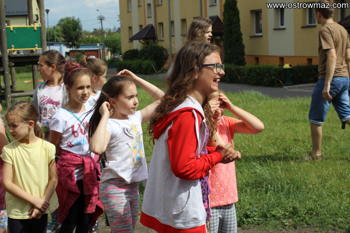W piątek 8 lipca dzieci zostały zaproszone wspólnie z rodzicami na spotkanie "Wakacyjne Podwórko" zorganizowane przez Miejski Dom Kultury na osiedlu Lubiejewska.