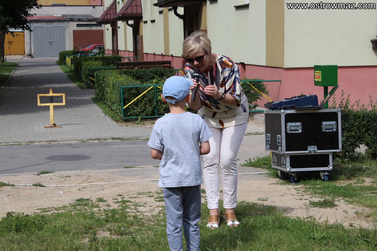 W piątek 8 lipca dzieci zostały zaproszone wspólnie z rodzicami na spotkanie "Wakacyjne Podwórko" zorganizowane przez Miejski Dom Kultury na osiedlu Lubiejewska.