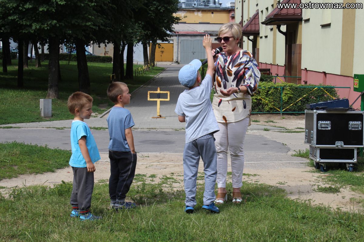 W piątek 8 lipca dzieci zostały zaproszone wspólnie z rodzicami na spotkanie "Wakacyjne Podwórko" zorganizowane przez Miejski Dom Kultury na osiedlu Lubiejewska.