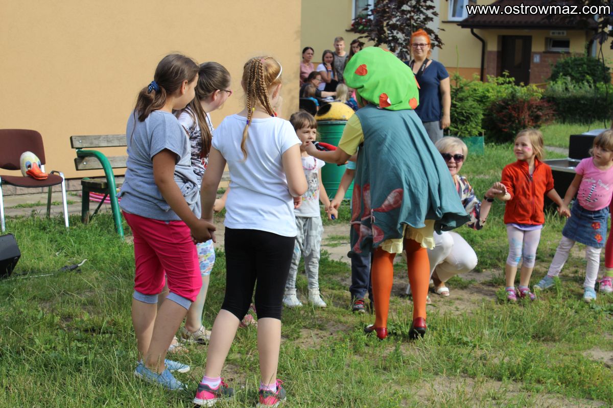 W piątek 8 lipca dzieci zostały zaproszone wspólnie z rodzicami na spotkanie "Wakacyjne Podwórko" zorganizowane przez Miejski Dom Kultury na osiedlu Lubiejewska.