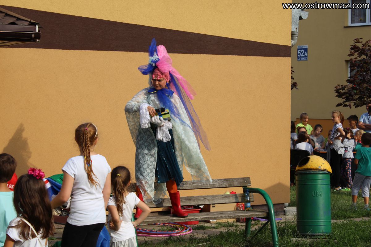 W piątek 8 lipca dzieci zostały zaproszone wspólnie z rodzicami na spotkanie "Wakacyjne Podwórko" zorganizowane przez Miejski Dom Kultury na osiedlu Lubiejewska.
