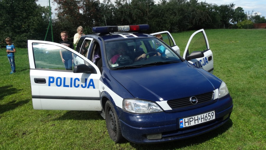 Dzieci odpoczywające na półkoloniach w OSP w Chmielewie odwiedzili funkcjonariusze ostrowskiej komendy z Andim - psem policyjnym.