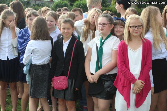 Uroczyste rozpoczęcie roku odbyło się na boisku szkolnym.