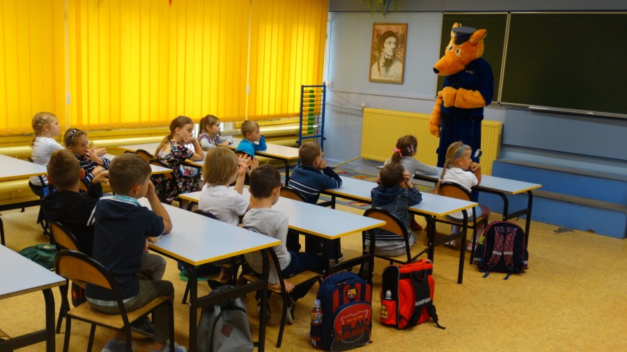 Najmłodszych mieszkańców Ostrowi Mazowieckiej odwiedzili policjanci z ruchu drogowego oraz maskotka Lisek.