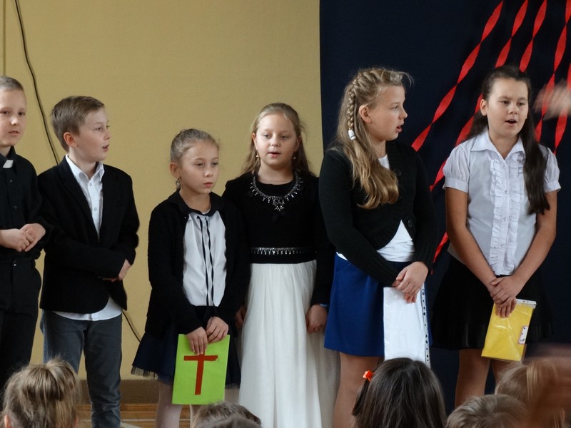 Klub Papieski pod kierunkiem p. Małgorzaty Ryszewskiej przybliżył społeczności uczniowskiej nauczanie św. Jana Pawła II o Bożym miłosierdziu oraz ukazał troskę Papieża, byśmy postawą bliskości i dobroci wobec bliźnich wypełniali Jego wezwanie "Bądźcie świadkami miłosierdzia!".