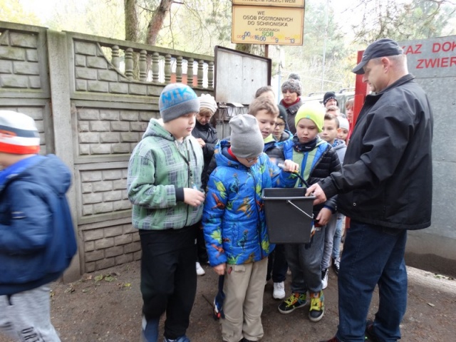 Uczniowie klas IV - VI i III e przez tydzień zbierali karmę dla psów, z którą wybrali się na wycieczkę do schroniska dla zwierząt.