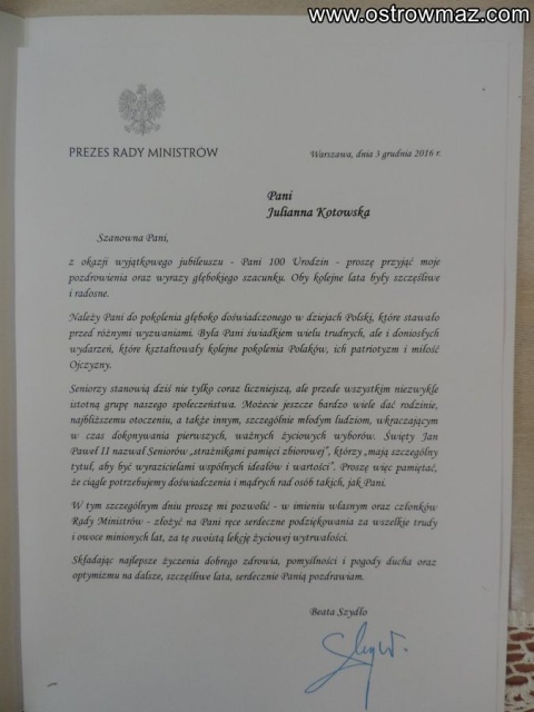 3 grudnia 2016 r. pani Julianna Kotowska z Błędnicy obchodziła swoje setne urodziny.