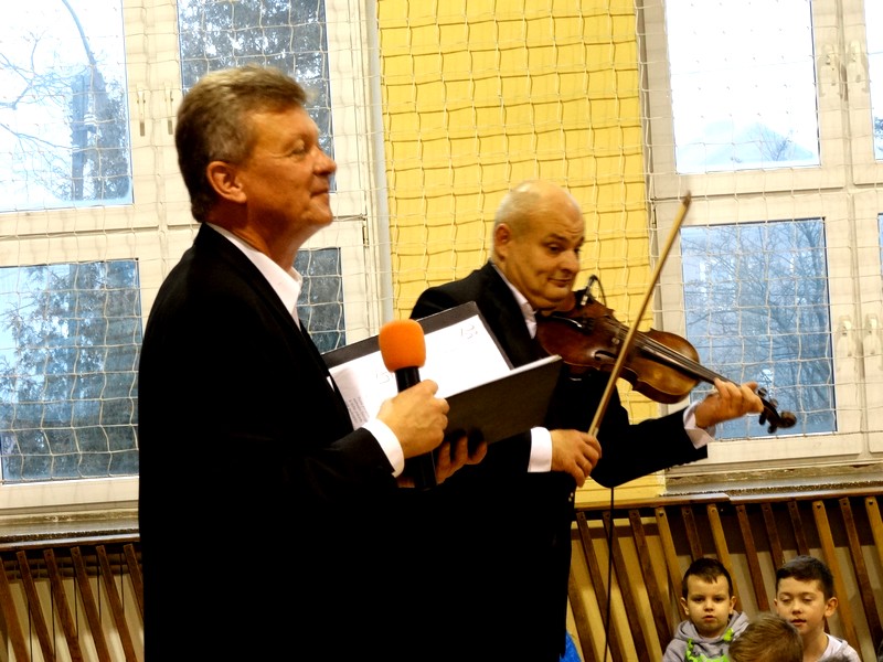 20 grudnia uczniowie i nauczyciele SP1 muzycznie powitali dzień szkolny, a to dzięki występowi muzyków duetu smyczkowego reprezentowanego przez Łódzkie Biuro Koncertowe "Wirtuoz".