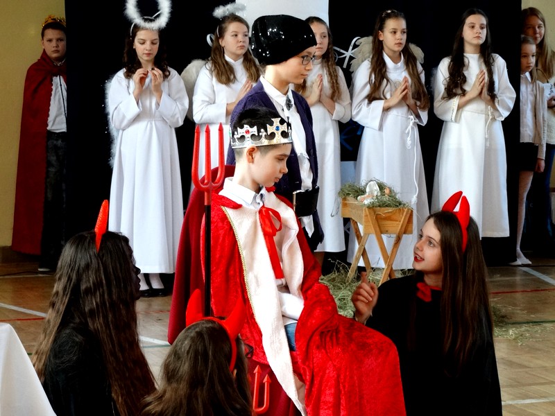 W przedstawieniu wzięła udział młodzież szkolna z różnych klas. Całość przedsięwzięcia mocno wspierał chór szkolny prowadzony przez panią Agnieszkę Jakubiak.